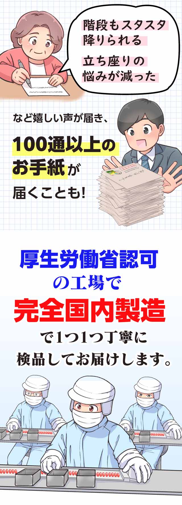 だから、重い荷物の持ち運び、階段の上り下り、椅子や床の立ち上がりなど
